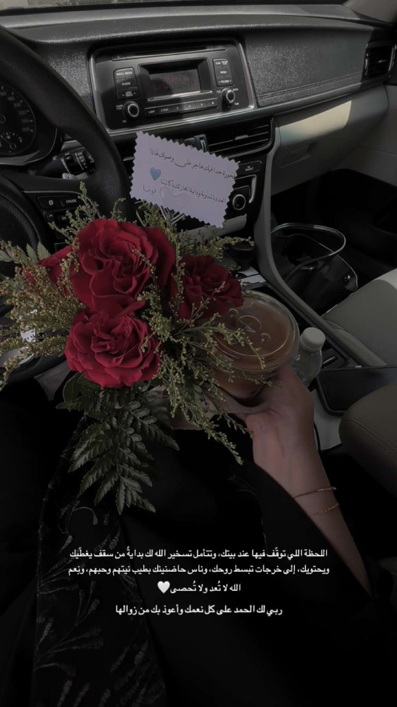 السّاعة الثامنة إلا ربع مساءً، لاح لي وجه الرياض وارتسمت ابتسامتي، والمشهد الثابت في كل دخولٍ: “أخرجْ يدّي من النافذة ويسبقني قلبي بـ: “يا كثر حبّي للرياض”.. هُنا نعيم قلبي الأوّل! النّعيم الثاني والأخير يتنقّل بين: المجمعة، الزلفي والغاط! مع كل حبّي وشوقي وحنيني.