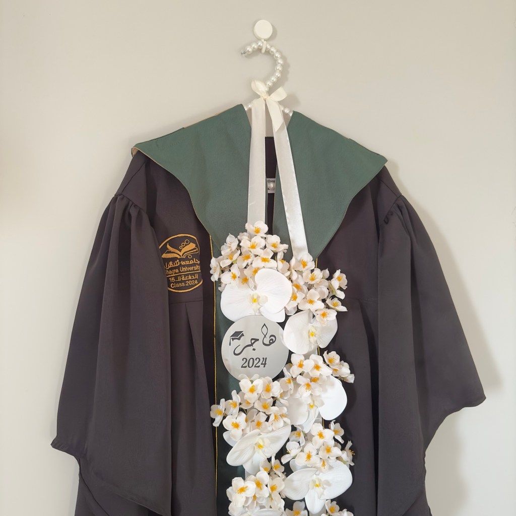 وشاح التخرج بجانبي، والعباءة على مدّ بصري، استرق النظر الخجول بين الحين والآخر.. هل ما أراه حقيقة؟ إنّ بيتي يحتضن حلمي، والركن الذي لطالما شهد صراعات الدراسة، يتزيّن اليوم بملحقات الاحتفـال، ثمّ رسميًا بت أُعلن نفسي جهرًا: أنا هاجَر، خريجة قسم المحاسبة بدرجة البكالوريوس، مع مرتبة الشرف.